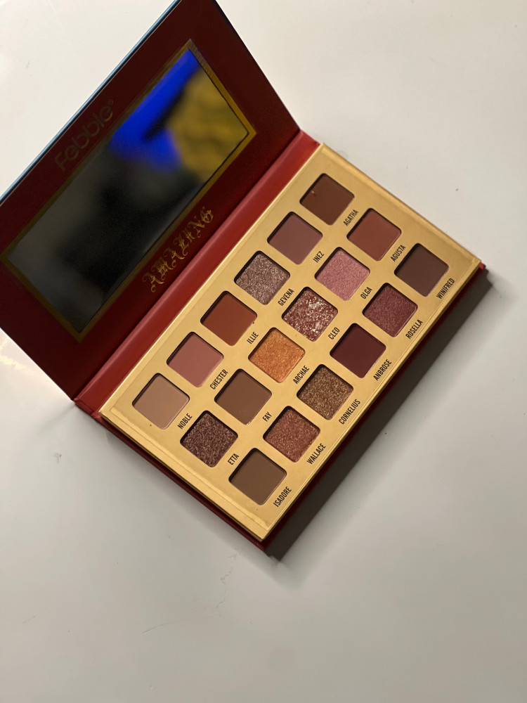 ظل عيون مكون من 18 لون متنوع من الوان المات والشمر بكوالتي جميل من ماركة Febble صناعة باريس